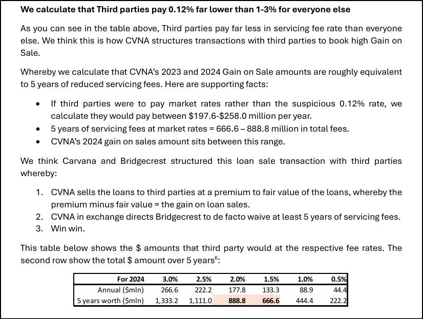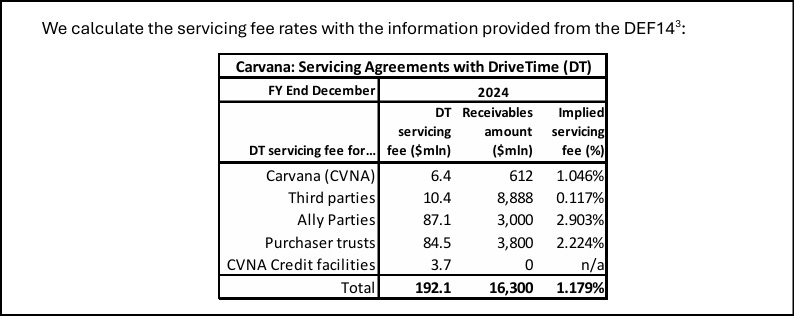 Therefore, third-party servicing fees are actually higher / normal, so their claim that servicing fees are lower to help offset higher purchase prices of CVNA loans doesn’t hold.