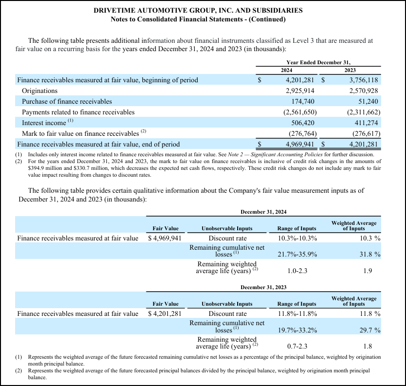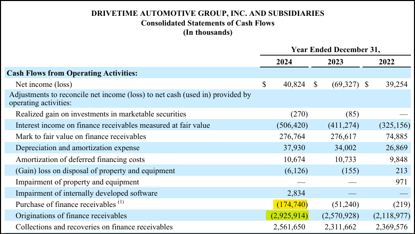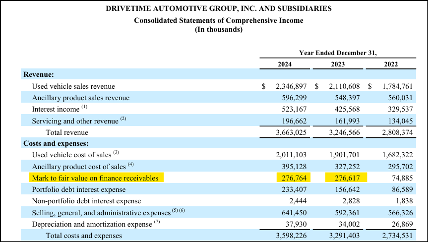 But they were bad loans as seen by DriveTime’s immediate write-down of the loans (originations vs fair value, with their focus on 2024).