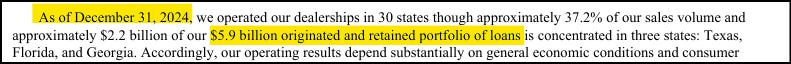 DriveTime’s annual report mentions the $5.9B of originated and retained portfolio of loans in a few places.