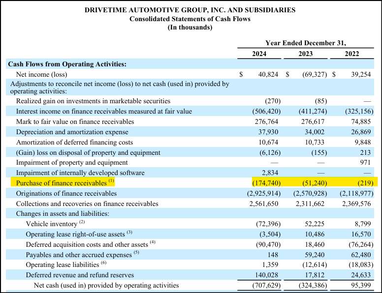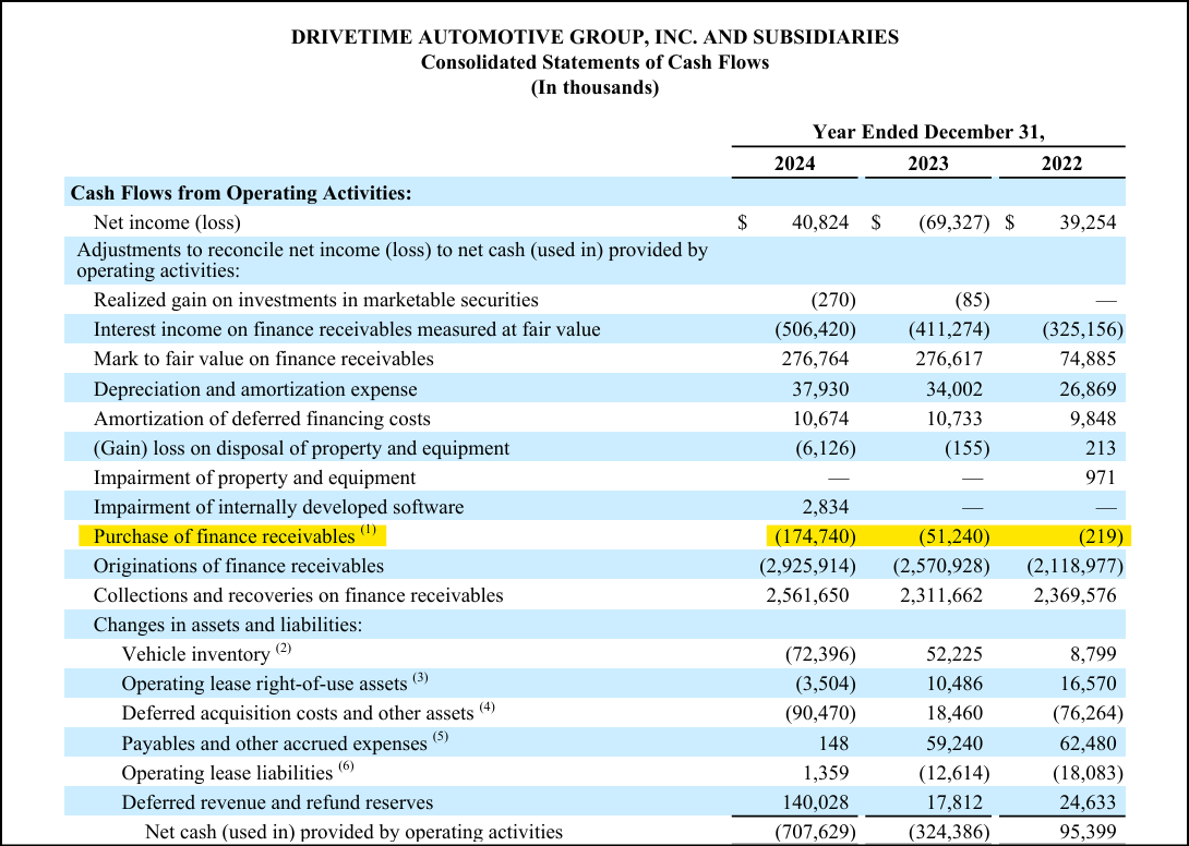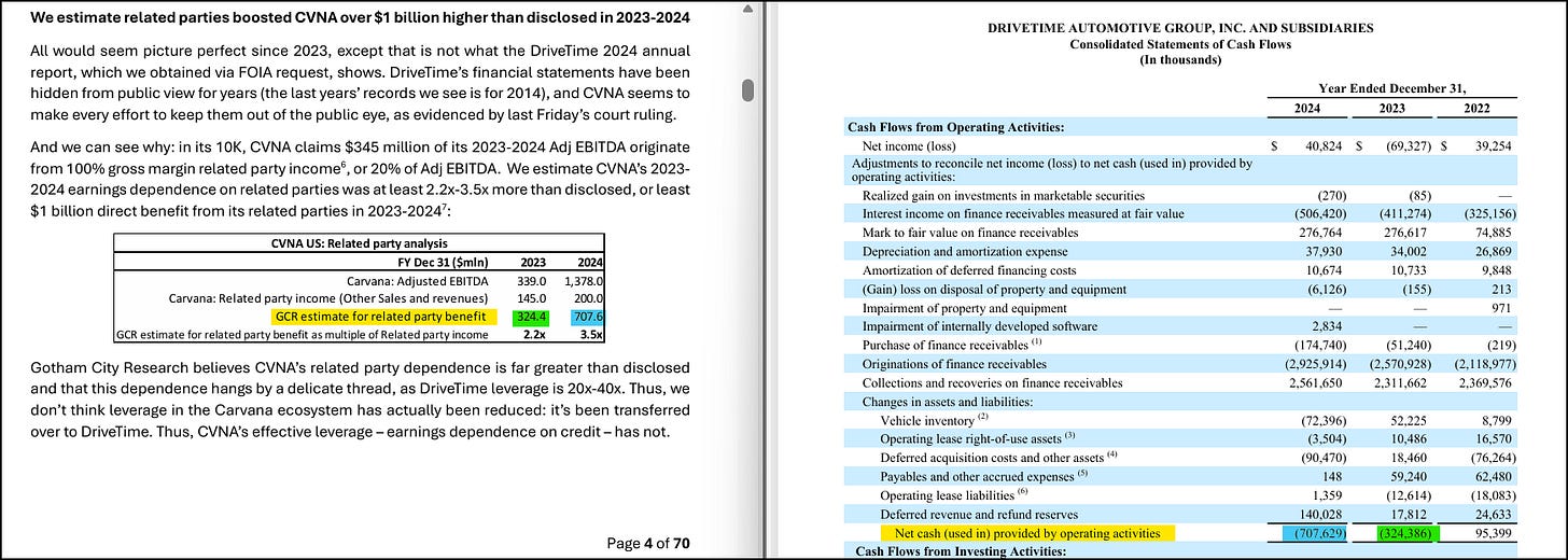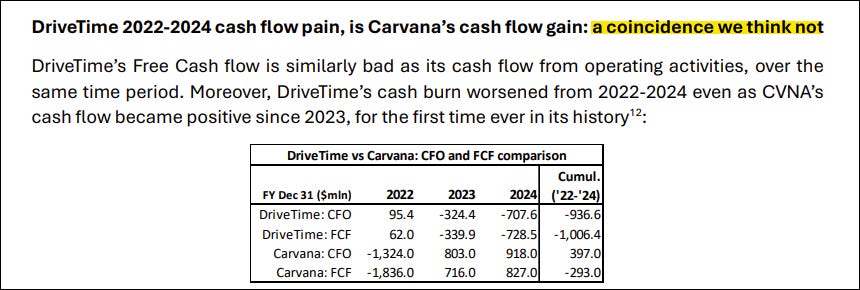So, a key item in their report is how CVNA’s earnings are overstated by $1B+, where that matches DriveTime’s $1B of operating cash flow (OCF) losses, which are now available to see from DT’s 2024 annual report.