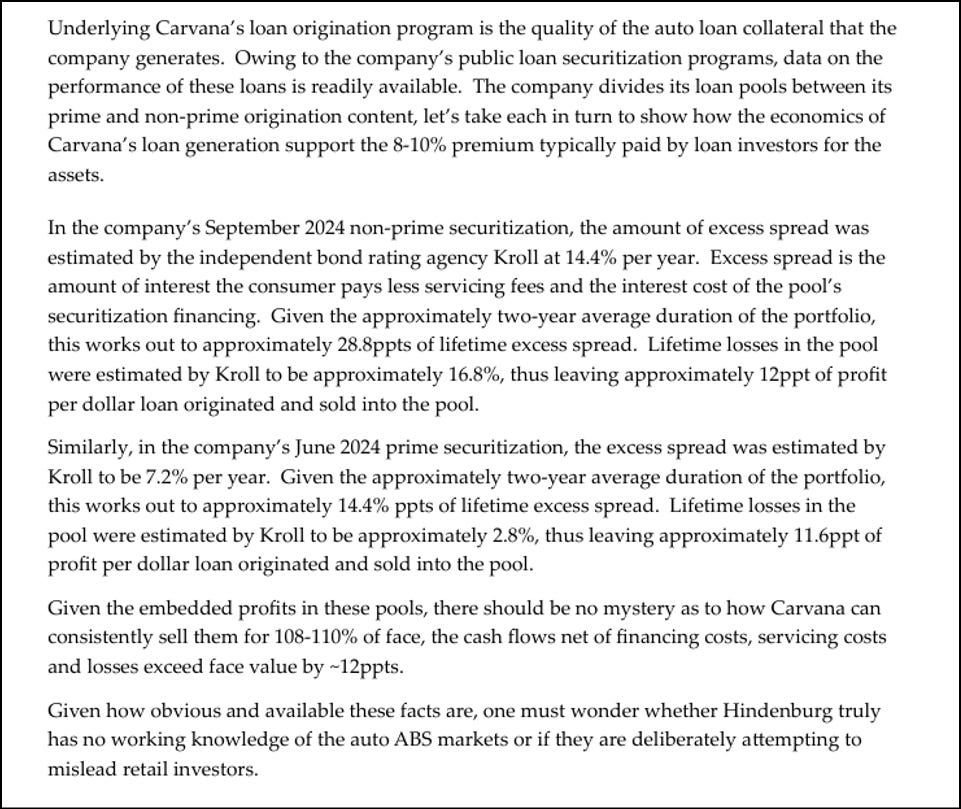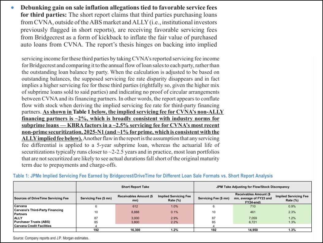 Claims of Below-Market Servicing Fees Driving CVNA’s Gain on Loan Sales Rely on Modeling and Assumption Errors