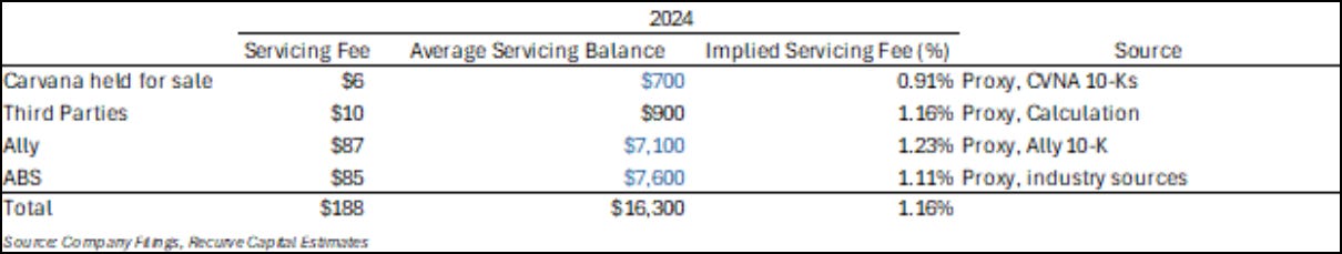 For Ally and Purchaser Trusts, Gotham used servicing fees that apply to multiple years of loans being serviced within 2024, but divided it by only the loans sold in the single year of 2024. Servicing fees are paid on the outstanding balance of the total portfolio, not just the vintage originated that year.