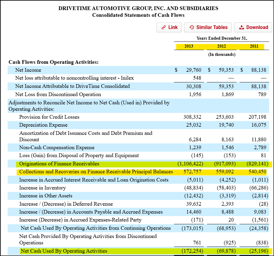 DriveTime’s significant operating cash flow (OCF) losses during these two years are from supporting CVNA.